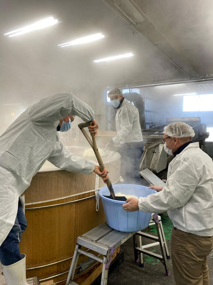 What was particularly exciting was that we were not only allowed to passively observe, but also actively participate. We helped cool the freshly steamed rice, prepare the mash and distribute the valuable koji powder, which is essential for fermentation. This direct contact with the production process made us feel even more intensely the deep craftsmanship behind every drop of sake.